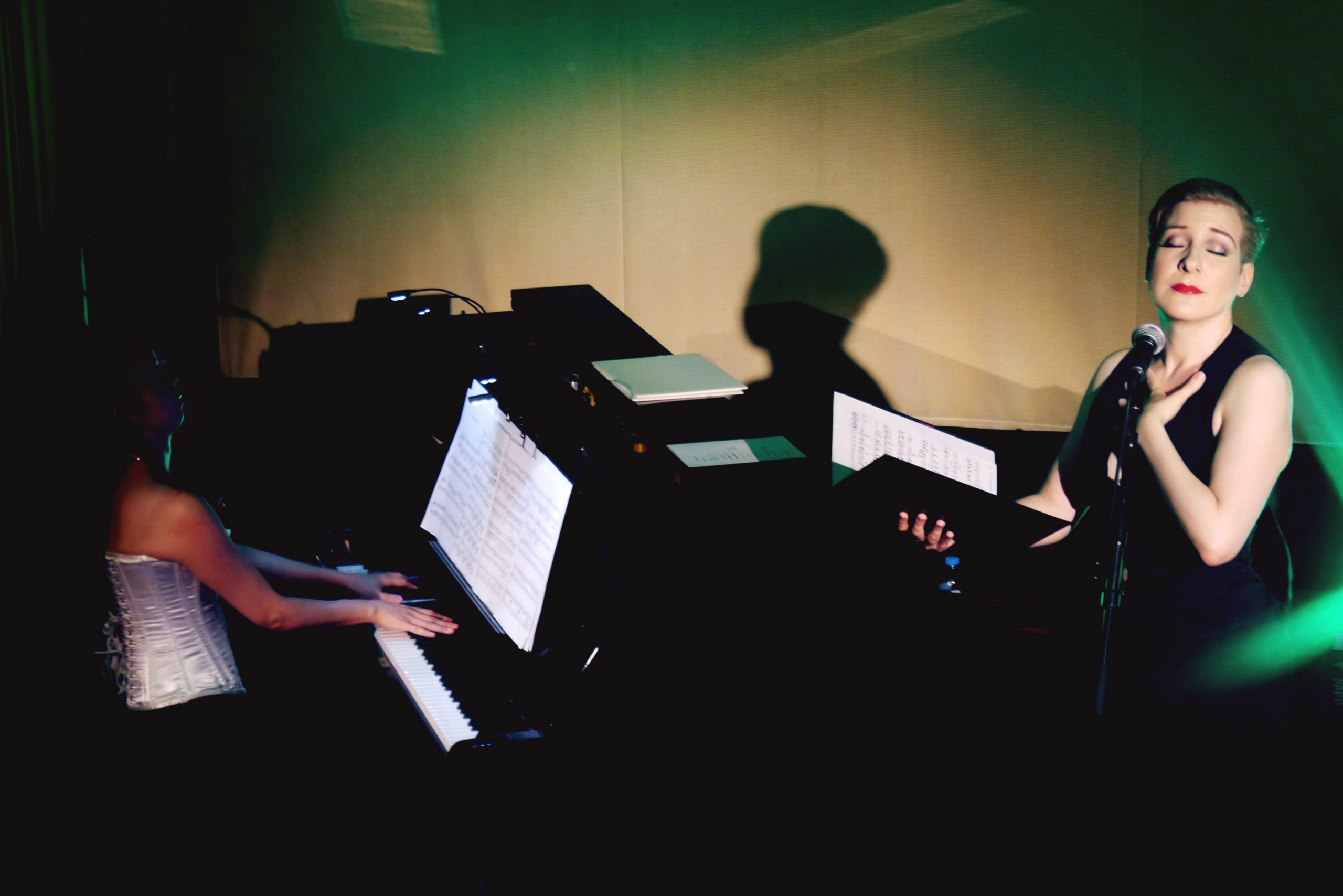 Cocktail de voix et piano, le Duo Absinthes. vous invite à un voyage au début du 20ème siècle, entre Paris et Berlin, dans l’atmosphère équivoque des cabarets.